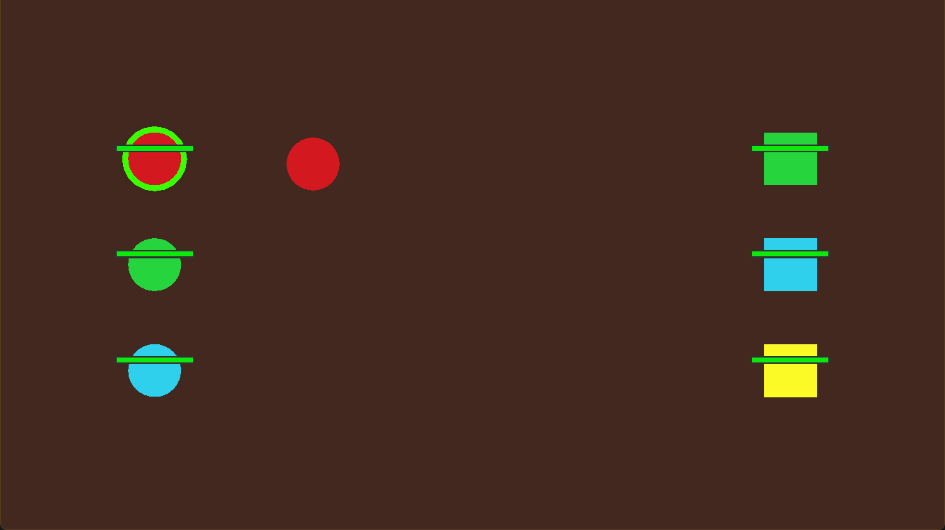 - Battle (Movement): You are all the circles, fighting all the squares.